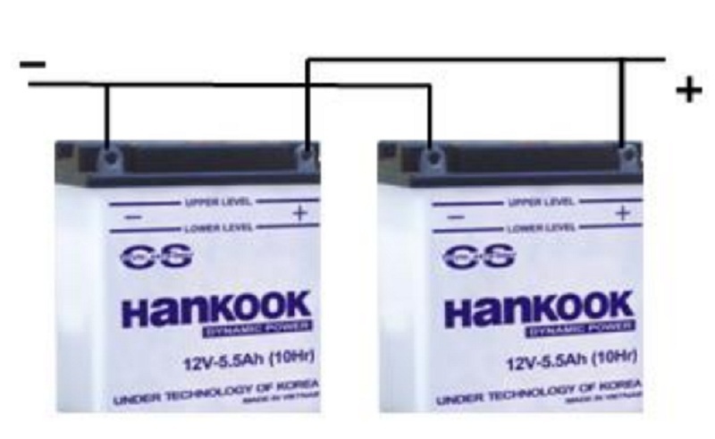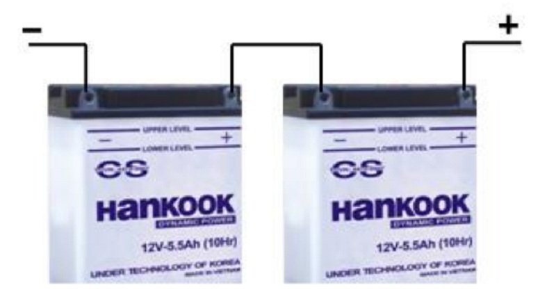 Hình 2.30: Phương pháp đấu nối tiếp 2 bình ắc - quy