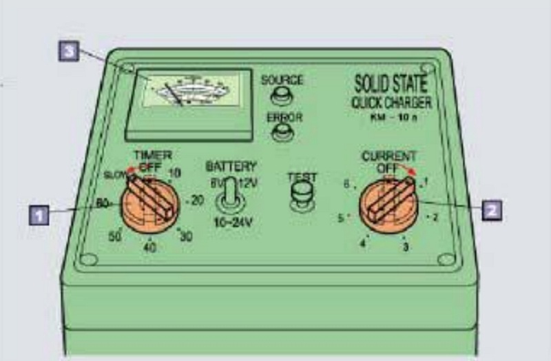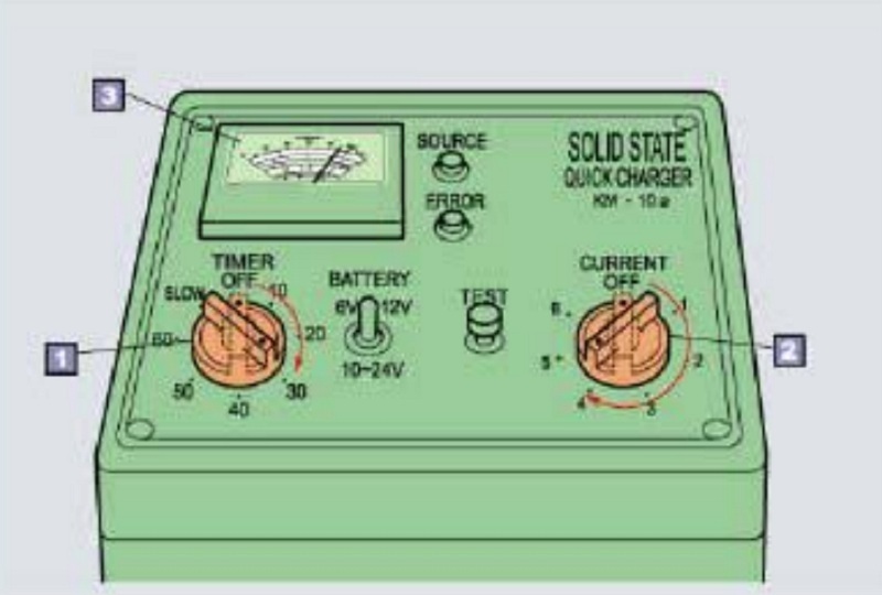 1. Nạp thường; 2. Nạp nhanh; 3. Am-pe kế