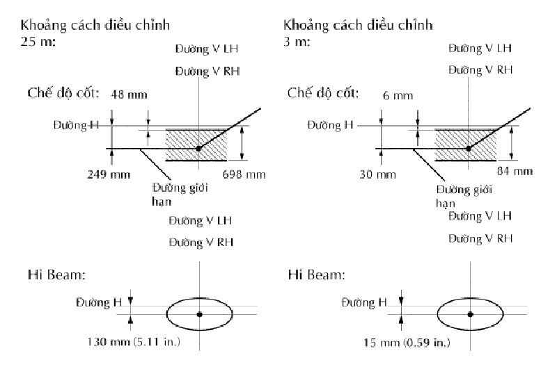 iv. Đường V LH, V RH (vị trí dấu tâm của đèn pha LH và RH):