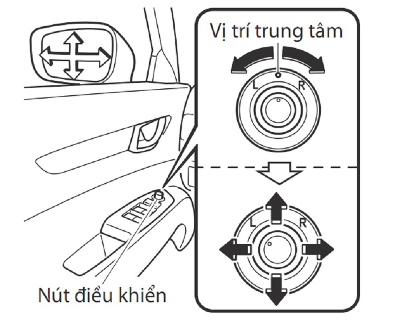 2. Nhấn nút điều khiển kính tương ứng với hướng điều chỉnh mong muốn.