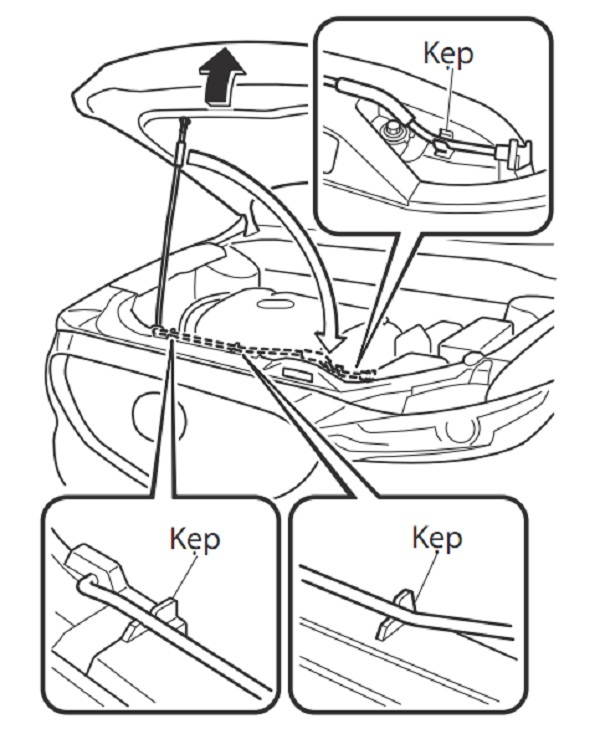 CHÚ Ý: Khi đóng nắp ca-pô không được nhấn nó quá mức như sử dụng trọng lượng của bạn. Mặc khác nắp ca-pô có thể biến dạng.