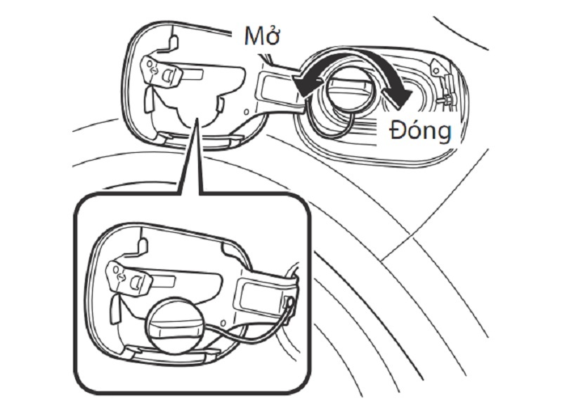 Để mở nắp thùng nhiên liệu hãy xoay nó ngược chiều kim đồng hồ.