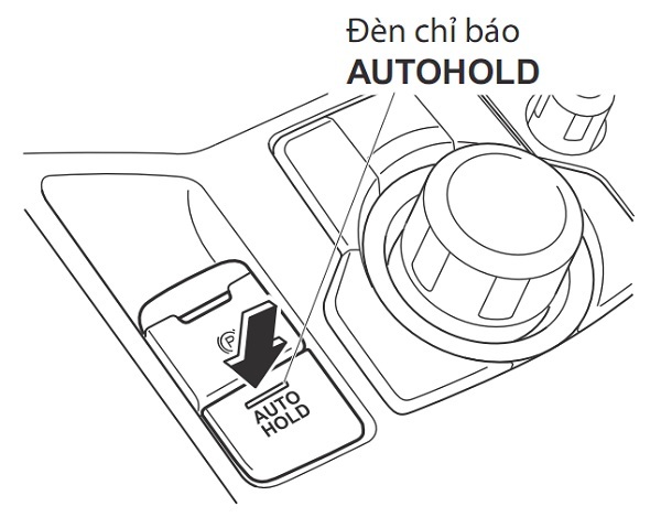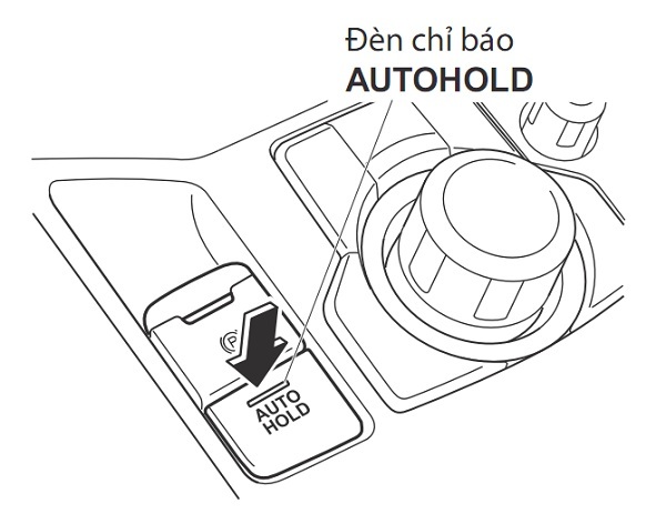 Để bật nhấn công tắc AUTOHOLD, lúc này đèn chỉ báo trên công tắc AUTOHOLD sẽ sáng (chức năng AUTOHOLD đang ở chế độ chờ - standby)