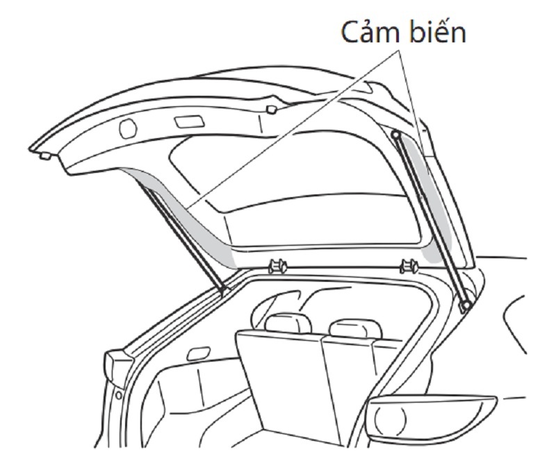 Cảm biến được lắp đặt ở 2 đầu cửa hậu. Nếu cảm biến bị hư hỏng thì sẽ không thể phát hiện được vật cản.Chức năng đóng/ mở tự động sẽ không hoạt động.