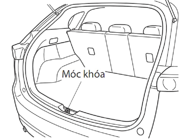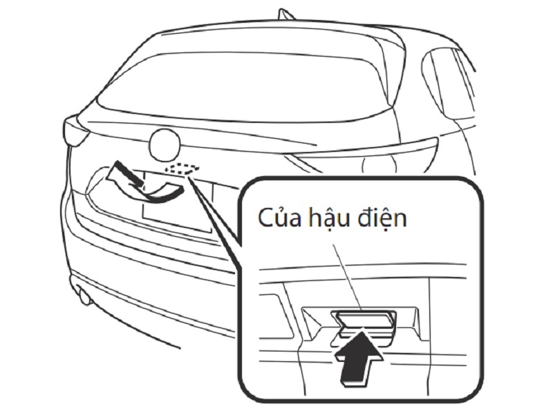 • Nếu ắc quy bị hết điện hoặc có sự cố trong hệ thống điện và cửa hậu không thể mở khóa thì cửa hậu có thể được mở bằng cách thực hiện theo quy trình mở khẩn cấp.