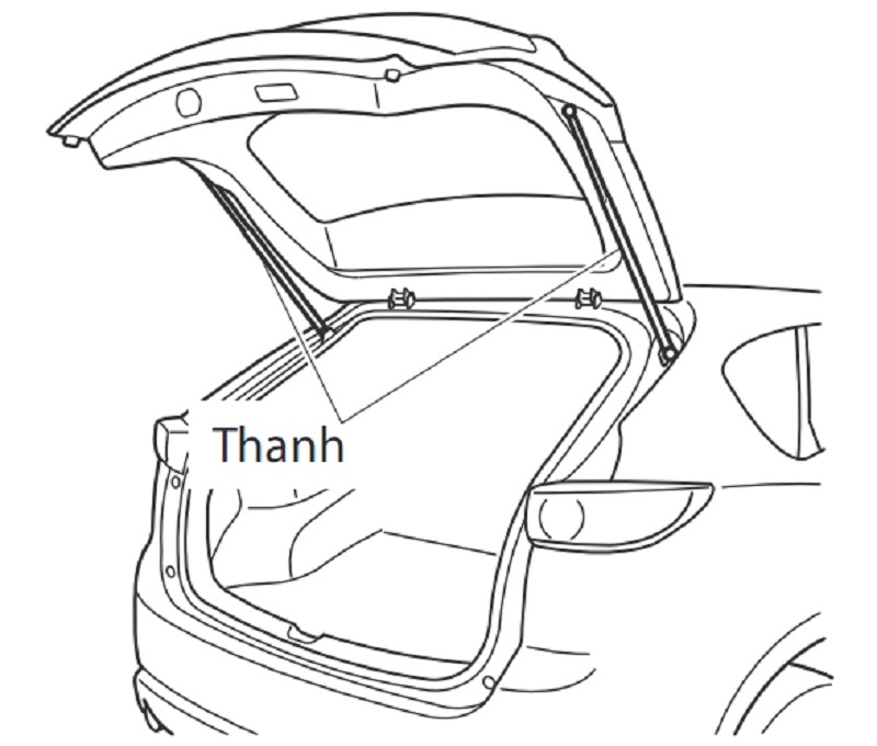 • Cẩn thận không được dùng lực tác động mạnh vào thanh chống cửa hậu như là dùng tay đẩy mạnh thanh chống. Nếu không, thanh chống sẽ bị cong và ảnh hưởng đến hoạt động cốp xe ô tô.