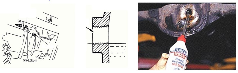 + Đổ dầu bôi trơn hộp số đúng mã hiệu, chủng loại đầy ngang lỗ dầu, hoặc đúng vạch qui định.