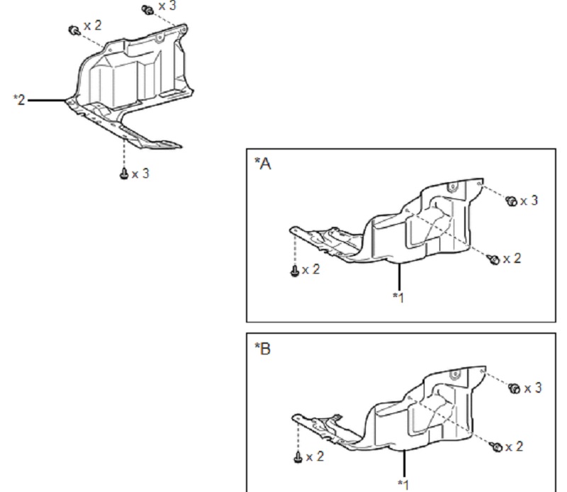 | *1 | TẤM CHẮN PHÍA DƯỚI BÊN TRÁI ĐỘNG CƠ | *2 | TẤM CHẮN PHÍA DƯỚI BÊN PHẢI ĐỘNG CƠ |