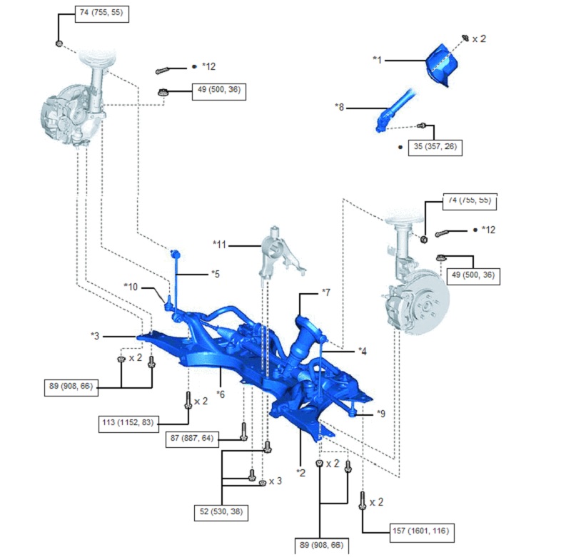 | *5 | CỤM THANH NỐI THANH ỔN ĐỊNH TRƯỚC PHẢI | *6 | DẦM NGANG HỆ THỐNG TREO TRƯỚC |