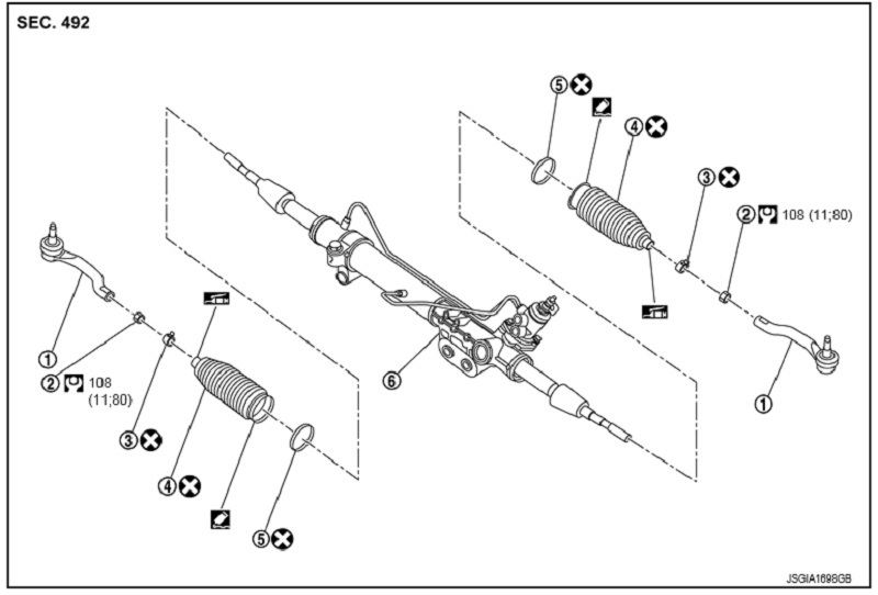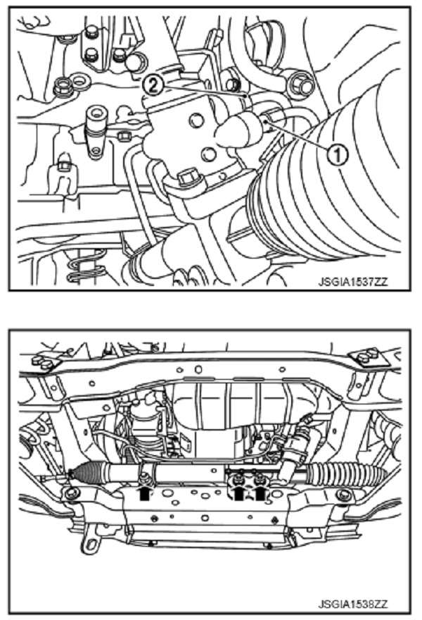 • Sau khi lắp, xả khí ra khỏi hệ thống thủy lực của hệ thống lái. Tham khảo ST-8, "Kiểm tra".