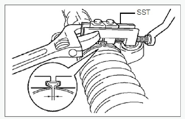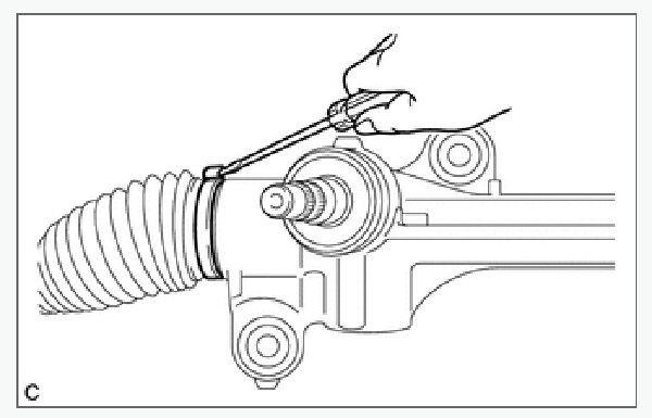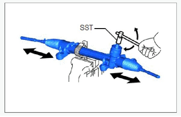 Sử dụng SST, quay trục bánh răng để xem cả hai cao su chắn bụi thanh răng thước lái trái và phải có dãn ra và thu lại êm không.