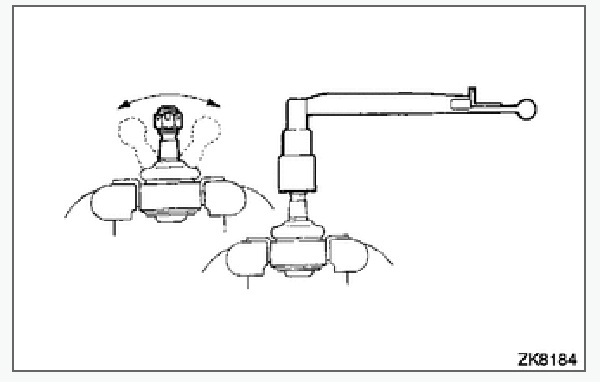 Kiểm tra lực xoay khớp cầu - rô tuyn lái ngoài: Móc cân lò xo ở điểm và kéo cân lò xo. Đảm bảo cân lò xo đọc được giá trị tiêu chuẩn khi vít cầu và rô-tuyn lái trong bắt đầu di chuyển. Thay rô-tuyn lái trong và rô-tuyn lái ngoài nếu nó nằm ngoài giá trị tiêu chuẩn.