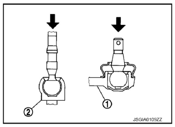 • Khi siết đai ốc khóa , đảm bảo cố định rô-tuyn lái ngoài bằng cờ-lê hoặc dụng cụ tương đương để ngăn khớp cầu tiếp xúc với khớp nối.