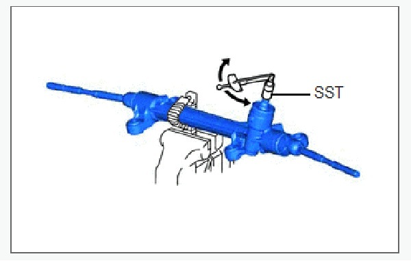 b.Sử dụng SST và cờ lê cân lực, quay trục bánh răng liên tục với tốc độ 4 đến 6 giây/vòng để kiểm tra tổng tải trọng ban đầu của thước lái.