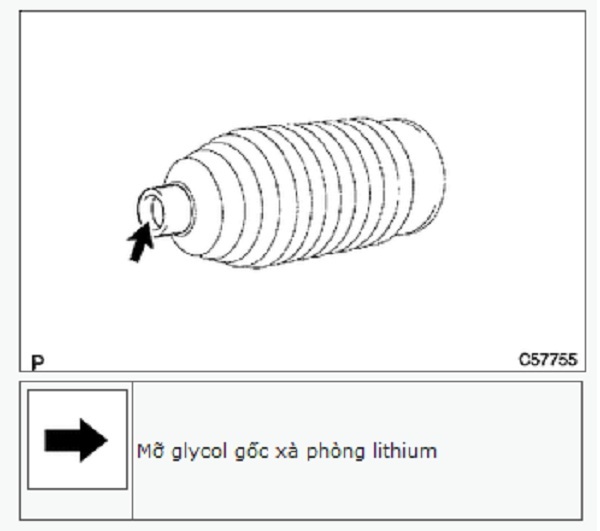 a. Tra mỡ lithium gốc glycol vào phía trong của cao su chắn bụi thanh răng mới số 2.