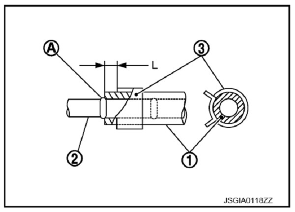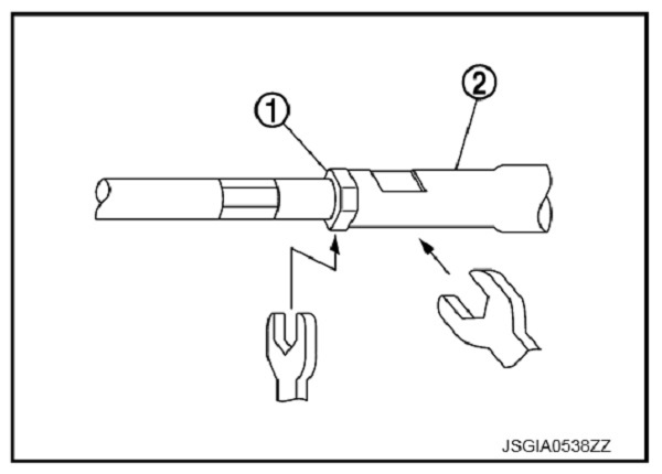 5. Điều chỉnh rô-tuyn lái trong đạt độ dài (L) tiêu chuẩn, sau đó siết đai ốc khóa 1 tới lực siết chỉ định. Kiểm tra lại độ dài sau khi siết chặt đai ốc khóa.