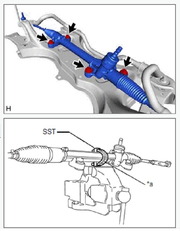 ·Hãy cẩn thận không được làm hỏng hoặc làm xoắn cao su chắn bụi thanh răng số 2.