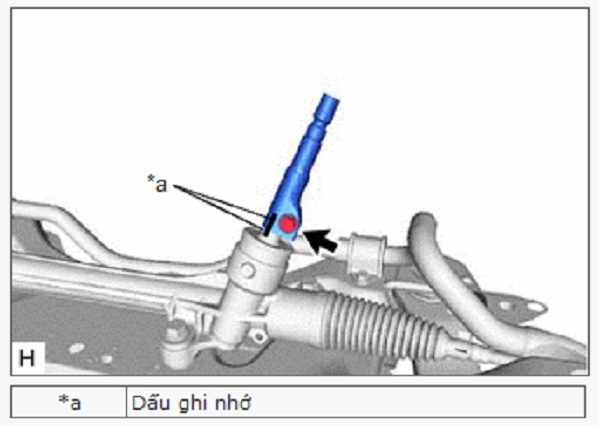 a. Đánh dấu lên cụm trục lái trung gian và thước lái.