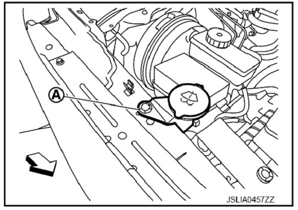 5. Tháo đai ốc gắn bình chứa nước rửa kính (A) .