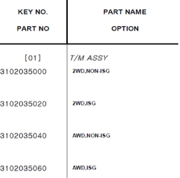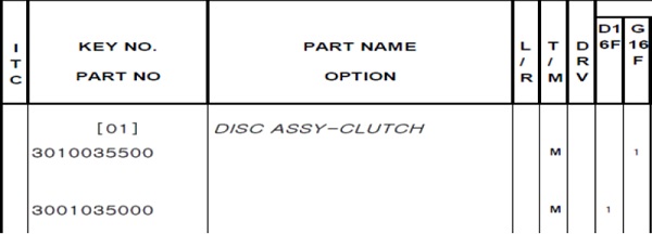 Ví dụ: Mã phụ tùng 3010035500 DISC ASSY-CLUTCH ( Đĩa côn) mã này chỉ có thể sử dụng cho số tay (MT) và dùng cho máy xăng