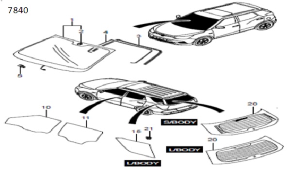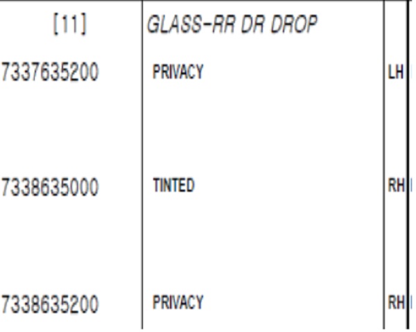 Ví dụ: cần tìm kính cửa sau phải. Tại đây ta sẽ tim hình ảnh liên quan đến kính cửa như hình bên dưới và thuộc phân nhóm 7840. Ta xác định được thứ tự của kính cửa sau phải là chi tiết thứ 11 trong phân nhóm 7840.
