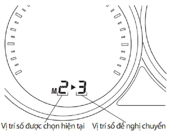 Ở chế độ sang số bằng tay (M), chỉ báo vị trí cần số sẽ sáng chữ “M” và kèm theo số đang được chọn.