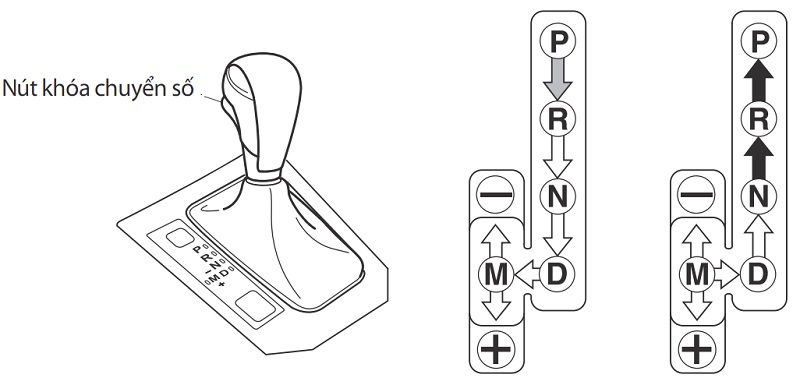 Vị trí M là chế độ chuyển số bằng tay. Số có thể được tăng/ giảm bằng cách dịch chuyển cần số.