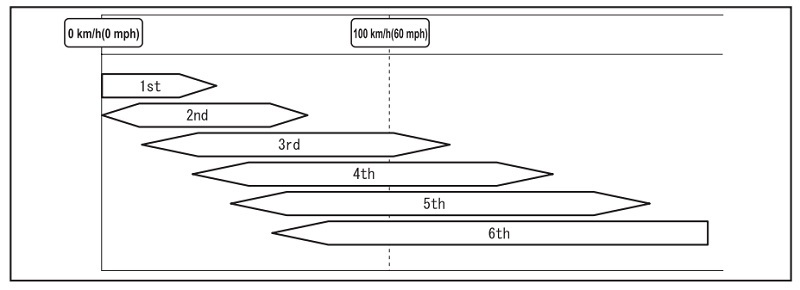 Trong chế độ sang số bằng tay, từng số được quy định tốc độ giới hạn như bảng bên dưới: khi người lái ra lệnh chuyển số trong các vùng này thì việc chuyển số sẽ được thực hiện.