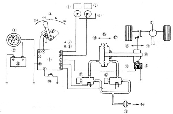 8 Công tắc "4 x 4" ở vị trí OFF 19 Cơ cấu khóa moay ơ