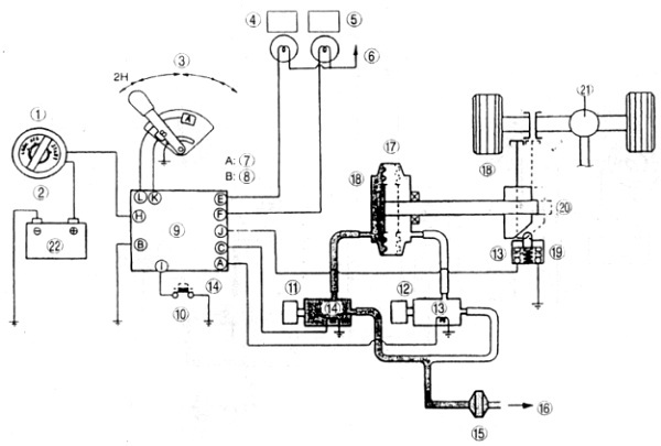 2 Tay điều gài cầu 13 Công tắc báo khóa moay ơ