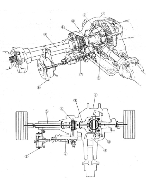 1 Hộp vi sai cầu trước 5 Cơ cấu khóa moay ơ