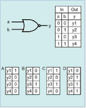 CÂU 6: Hãy chọn một mạch tương ứng với mối quan hệ giữa đầu vào và đầu ra trong bảng chân lý khi sử dụng mạch logic sau đây.