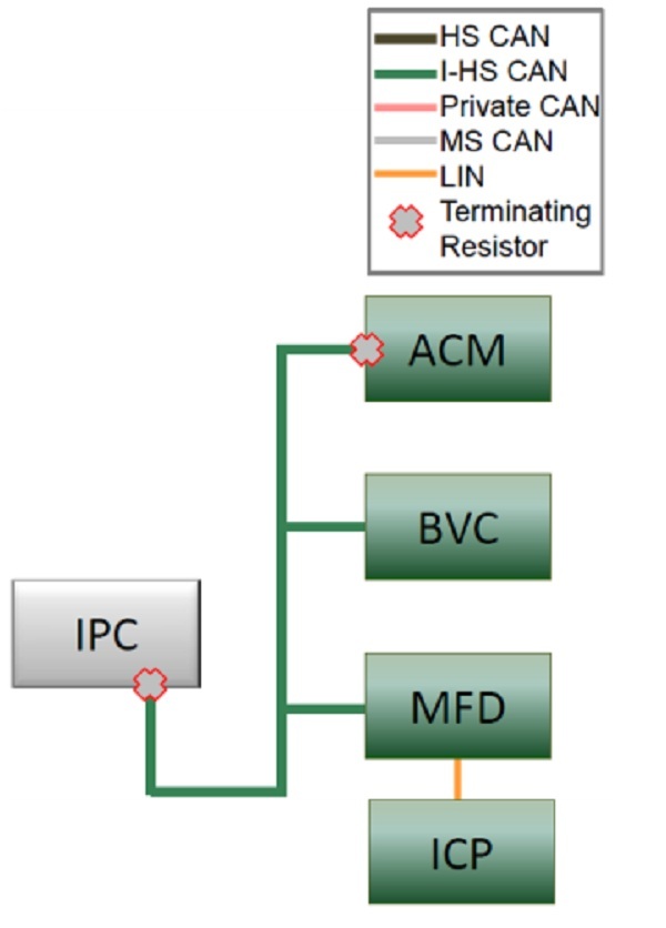 Đối với các cụm audio ngoại trừ cụm single DIN audio, hệ thống audio gồm nhiều hộp điều khiển được liên kết với nhau bằng mạng CAN. Hệ thống âm thanh sử dụng đường truyền HS CAN (500 kBit/s). Thiết bị duy nhất không liên kết với mạng CAN là ICP, ICP gửi thông tin đến MFD thông qua mạng LIN .