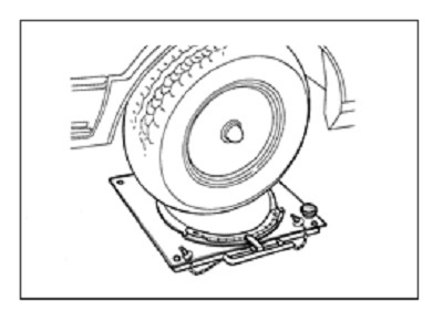 2. Đặt bánh xe trước lên đồng hồ đo bán kính quay và bánh xe sau lên giá đỡ để xe có thể cân bằng.