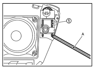 Chú ý: Khi chèn dụng cụ đầu cùn (A), đảm bảo dụng cụ tiếp xúc với lò xo xoắn . Nhấn lò xo xoắn để tháo đầu nối của tấm bấm còi.