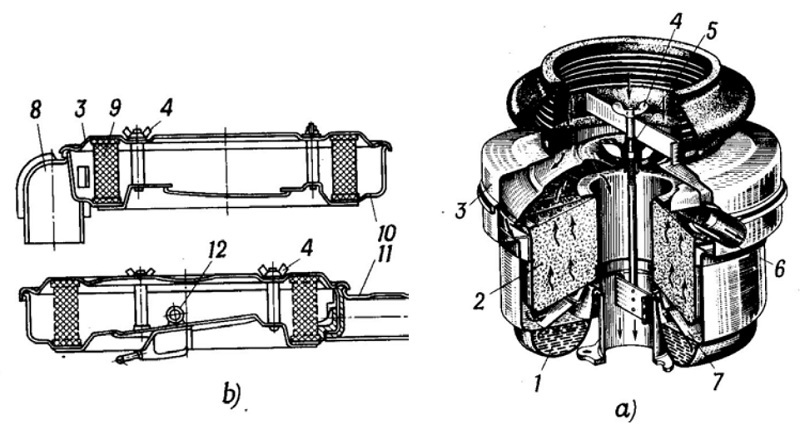 a. Bầu lọc dầu quán tính; b. Bầu lọc có lối lọc khô.