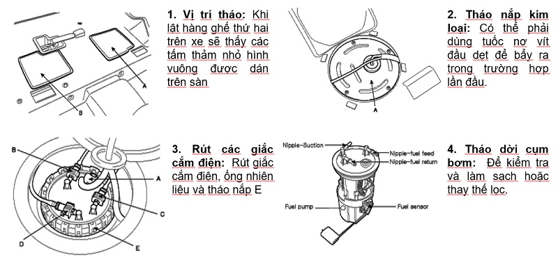 Bước 4. Tháo dời cụm bơm: Để kiểm tra và làm sạch hoặc thay thế lọc.