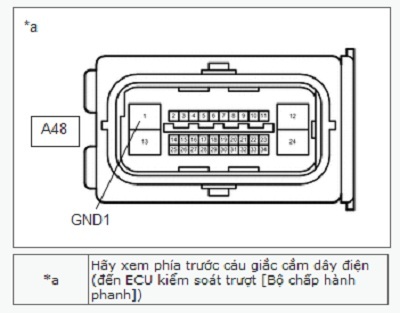 a.Nối lại giắc nối A48 của ECU điều khiển trượt (bộ chấp hành phanh).