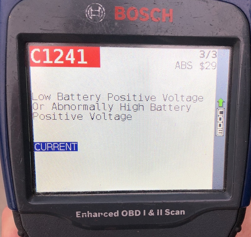 Mã lỗi C1241 code - Lỗi điện áp nguồn cấp thấp