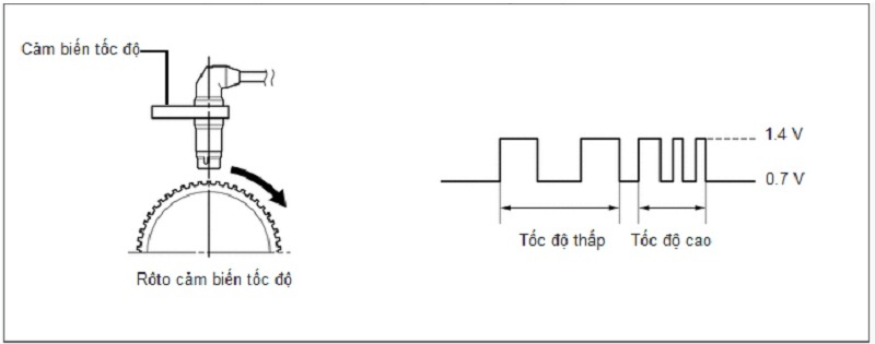 Các rôto cảm biến tốc độ có 48 răng. Cảm biến tốc độ kiểu IC Hall dùng tần số của xung phát ra để phát hiện tốc độ xe. Vì cảm biến phát ra xung, nó có thể phát hiện được tốc độ xe thậm chí khi xe gần như dừng hẳn.