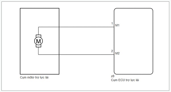ECU trợ lực lái cấp dòng điện đến môtơ trợ lực lái thông qua mạch môtơ.