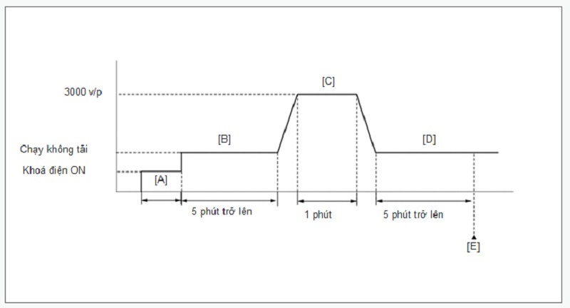 6.Khởi động động cơ và chạy không tải trong 5 phút trở lên [B].