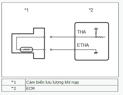 Điện trở R và cảm biến nhiệt độ khí nạp được mắc nối tiếp. Khi giá trị điện trở của cảm biến nhiệt độ khí nạp thay đổi theo sự thay đổi của nhiệt độ khí nạp, điện áp tại cực THA cũng thay đổi theo. Dựa trên tín hiệu này, ECM tăng lượng phun nhiên liệu khi động cơ nguội để nâng cao hiệu năng của động cơ.