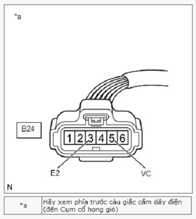 | B24-5 (VC) - B24-3 (E2) | Khoá điện ở vị trí ON | Từ 4.5 đến 5.5 V |
