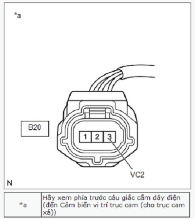 | B20-3 (VC2) - Mát thân xe | Khoá điện ở vị trí ON | Từ 4.5 đến 5.5 V |