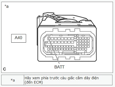 | A40-1 (BATT) - Mát thân xe | Luôn luôn | Từ 11 đến 14 V |