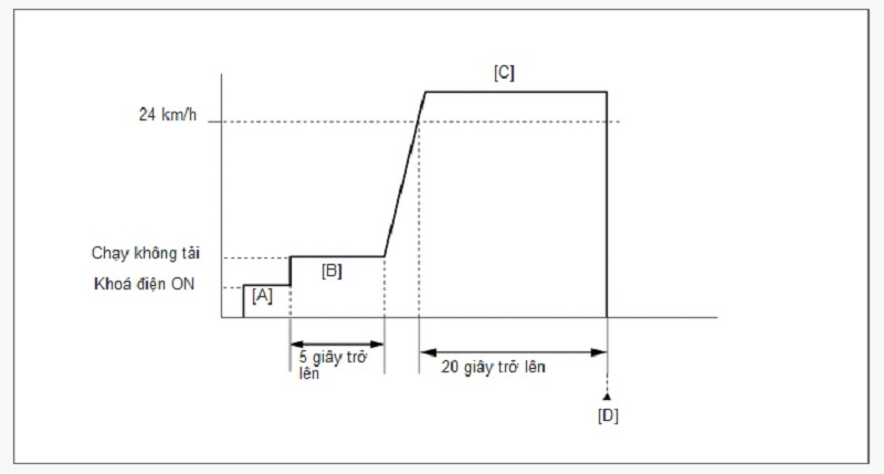 (a) Lái xe với tốc độ 20 km/h trở lên. (b) Tốc độ động cơ là từ 1000 v/p trở lên. (c) Tín hiệu STA là ON. |