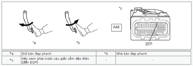 | A40-9 (STP) - Mát thân xe | Nhả ra | Dưới 1.5 V |