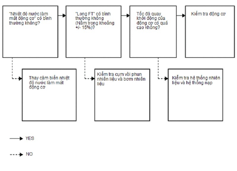 GỢI Ý:Nếu cháy ban đầu hoặc tắt máy khởi động xảy ra muộn, thì có thể lượng phun nhiên liệu không chính xác (quá thấp hoặc quá cao).
