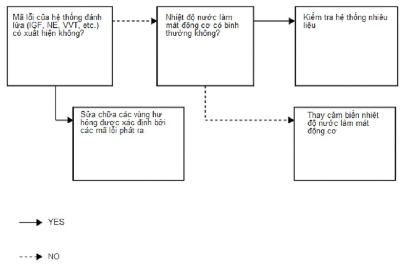 GỢI Ý:Nếu động cơ chết máy sau khi tắt máy khởi động, thì tỷ lệ khí-nhiên liệu có thể là không chính xác hoặc VVT có thể lại gặp trục trặc.